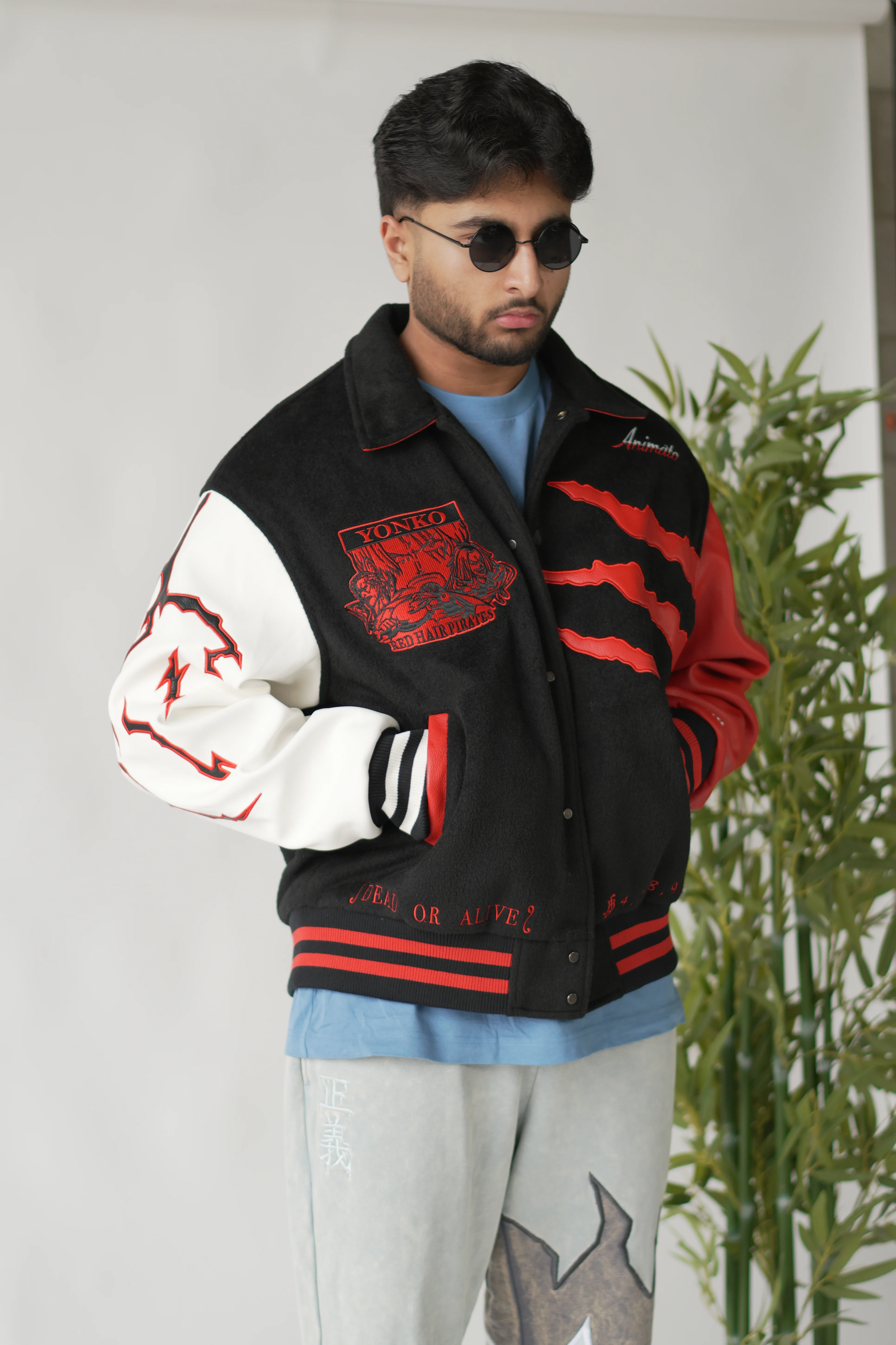 This beautiful varsity jacket was made to represent a very important crew... the Red Hair Pirates! I paid special attention to quality for this piece so everything not only looks great but also feels great. Looking through, you can spot all the references around the jacket. I wanted to design this jacket in a way that makes good use of the space rather than having a very template-looking one. I am very happy with how it turned out!